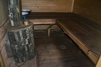 Все здесь просто и очень удобно: раздевалка просторная, полок в парной широкий, чайная комната уютная, мангальная зона рядом с баней, печь на дровах с закрытой каменкой. Максимально равномерный прогрев парилки!