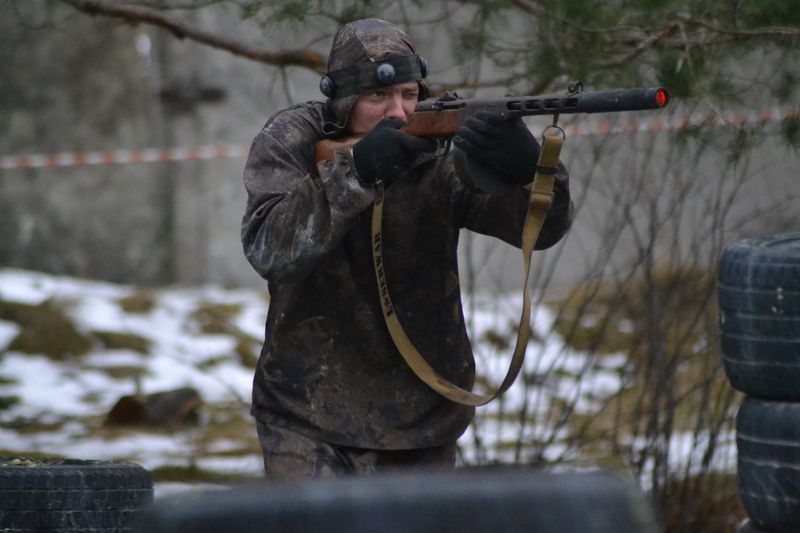 Одеваться необходимо комфортно и по погоде. На территории базы вам выдадут камуфляж и все необходимое для игры оборудование.